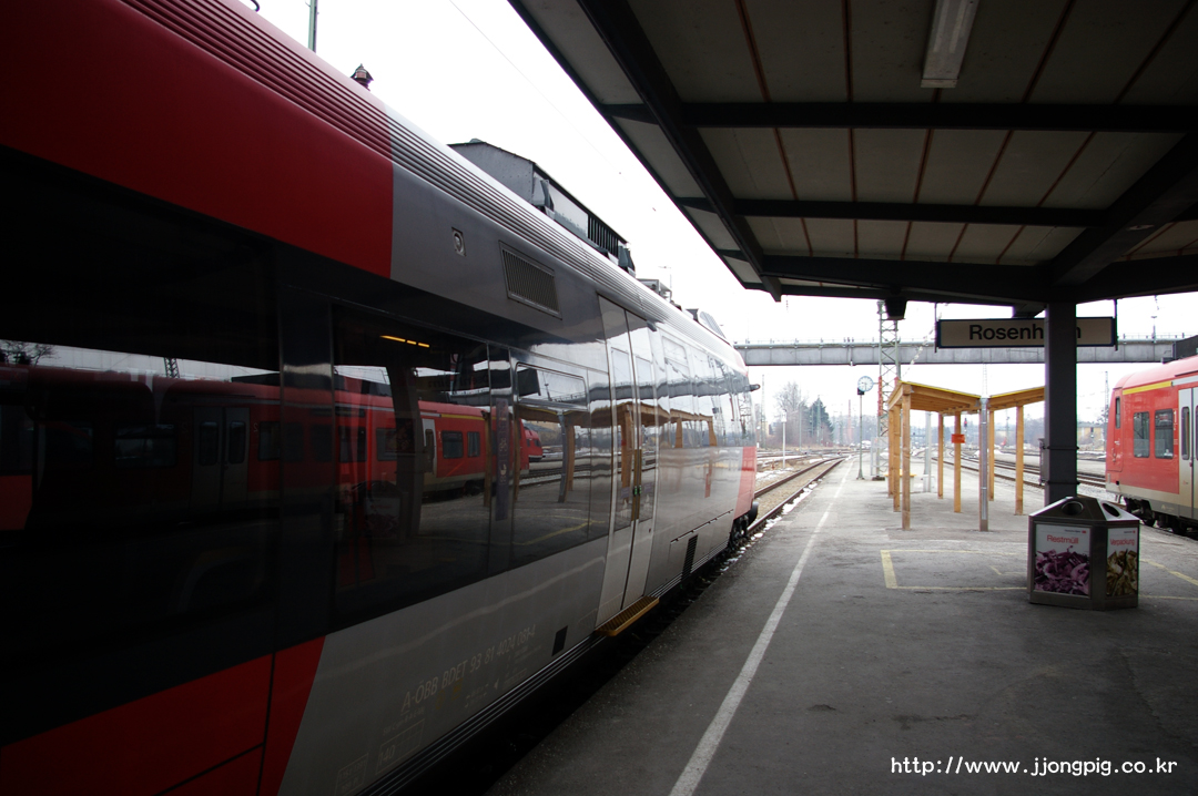 - 열차와 이동경로는 비슷한데, 중간에 잘츠부르크만 거쳐서 간다.