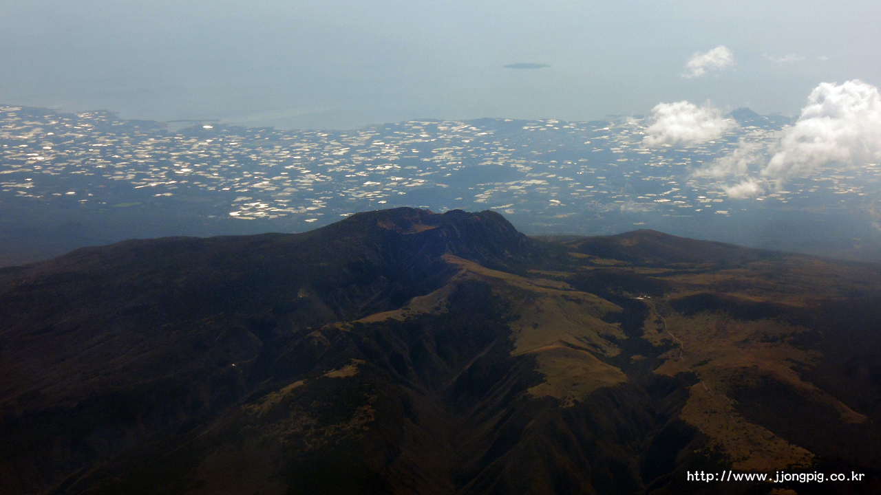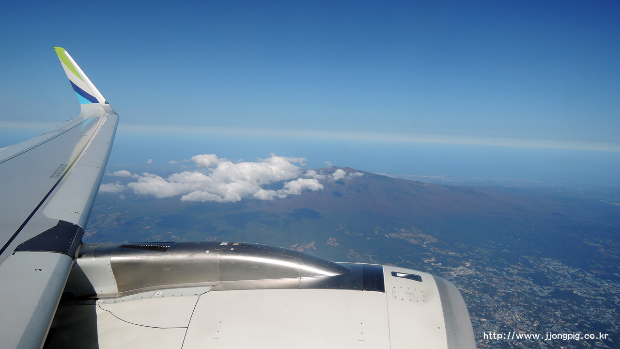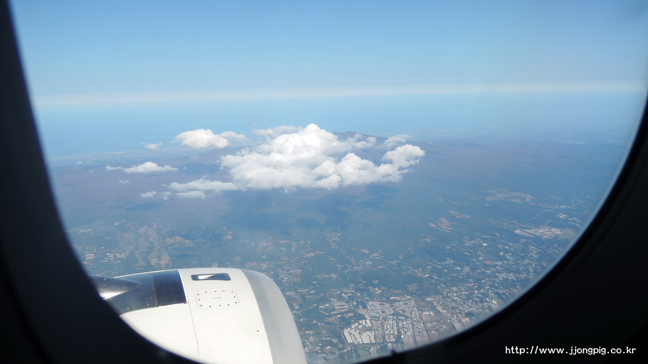 나는 진행방향의 왼쪽 창가석을 앉았는데, 아무래도 하늘에서 바라보는 풍경의 하이라이트는 제주도 백록담이었을 것 같다.