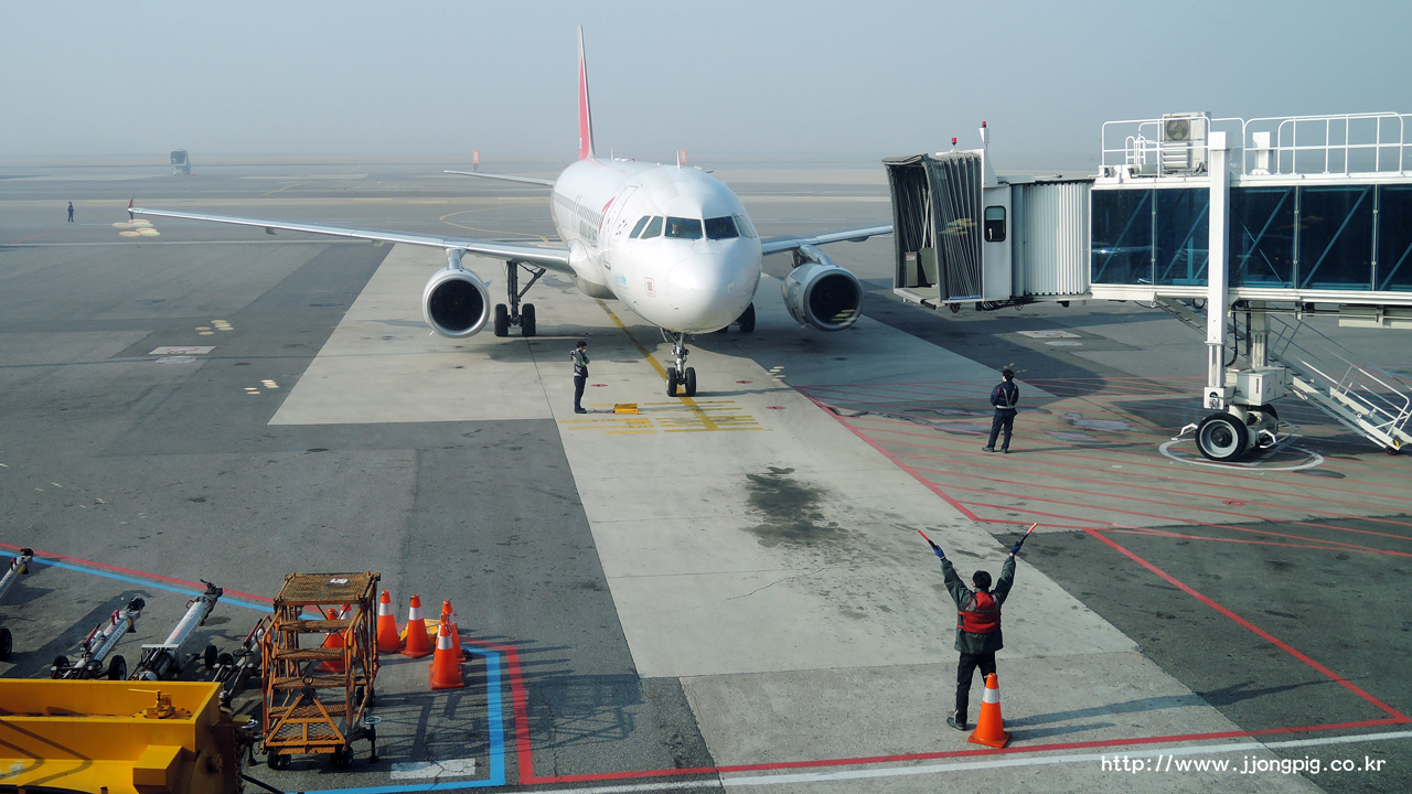 진에어도 보이고, 아시아나항공도 보인다. 김포공항의 14번 게이트 부근을 가면 유도사의 지시에 따라 비행기가 게이트 앞으로 오는 모습을 볼 수 있다.