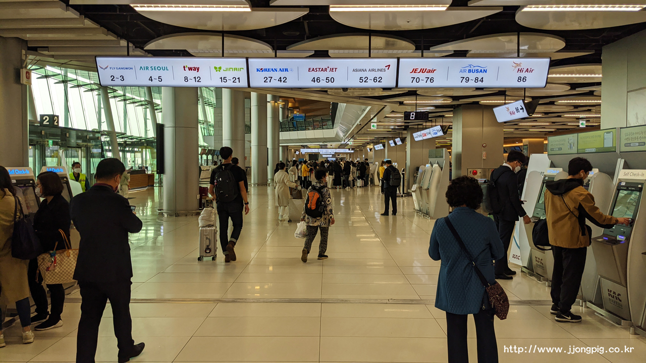 에어서울 카운터는 저~~~~~~~~~~~~~~~끝에 위치하고 있지만, 위탁수하물을 부치지 않고 셀프체크인 기계를 통하면 근처 가까운 곳에서 탑승권 출력이 가능하다.