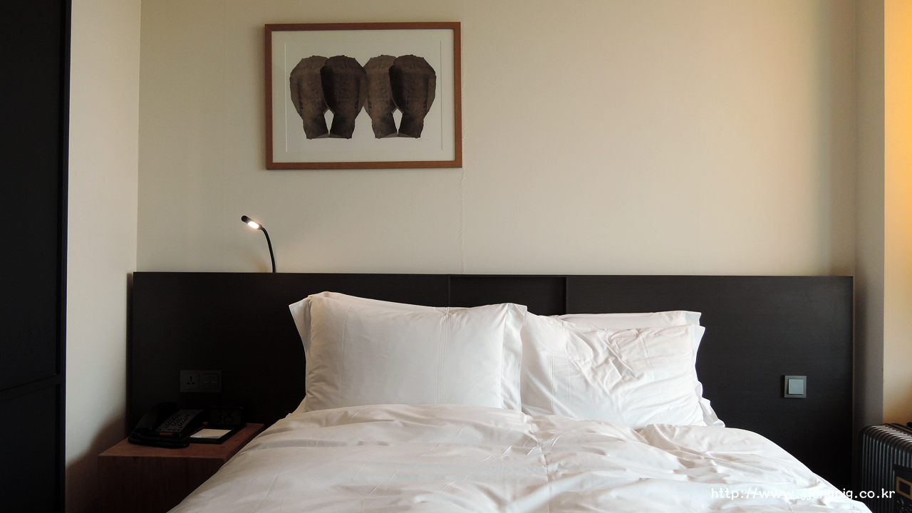 더블룸으로 구성된 침대는 딱 기본사이즈였다. 싱글룸으로 써도 손색없는 그런 사이즈이다.