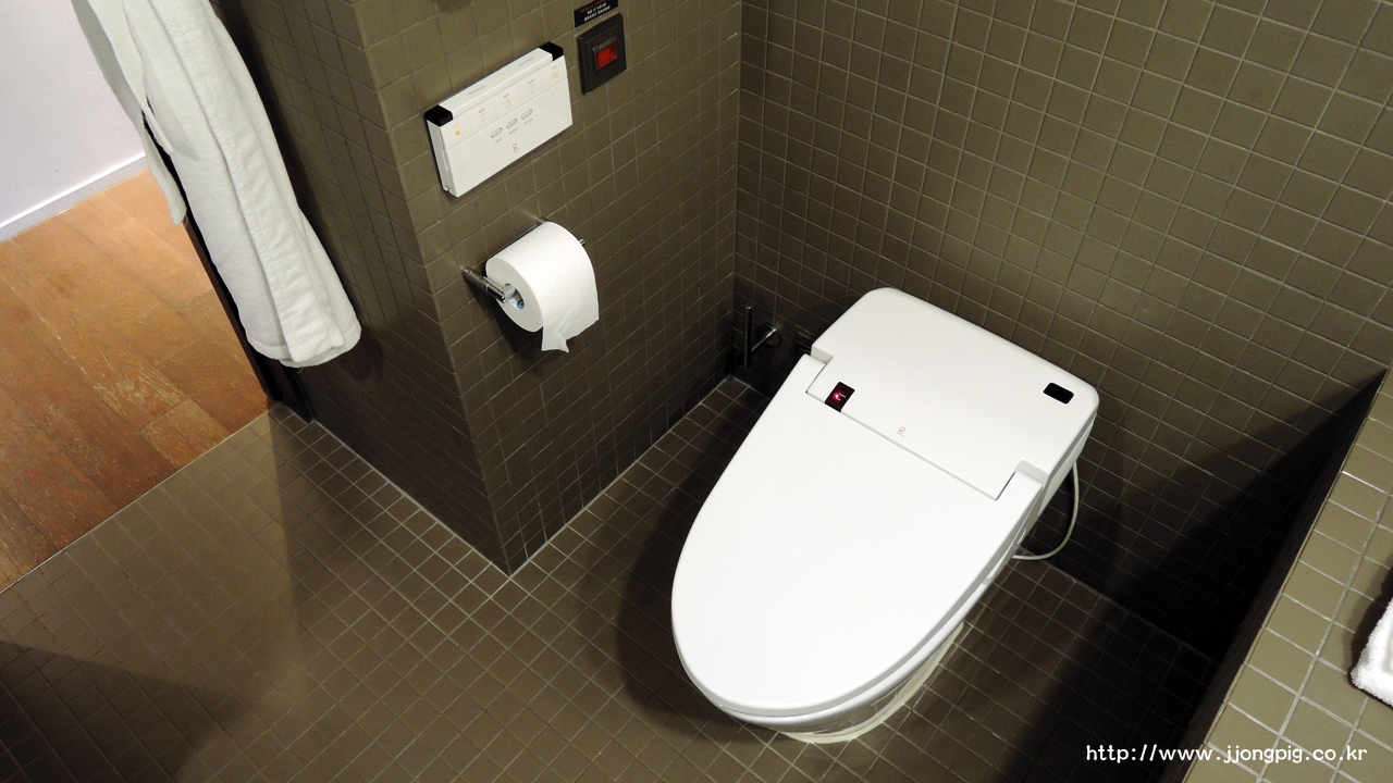 객실 중간에 큰 미닫이 문이 있어서 첫번째거는 닫은 상태, 두번째거는 열어놓은 상태를 찍은 것이다. 그래서 욕조에 몸을 담그고 바깥 전망도 바라볼 수 있는 형태다.