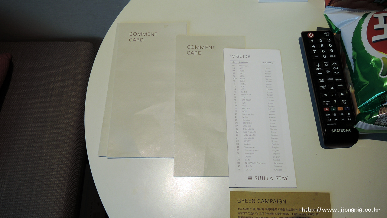 테이블에 있는 음료나 스낵 등은 우리가 직접 챙겨간것이고, 호텔에서는 생수 2병이 무료로 제공된다.