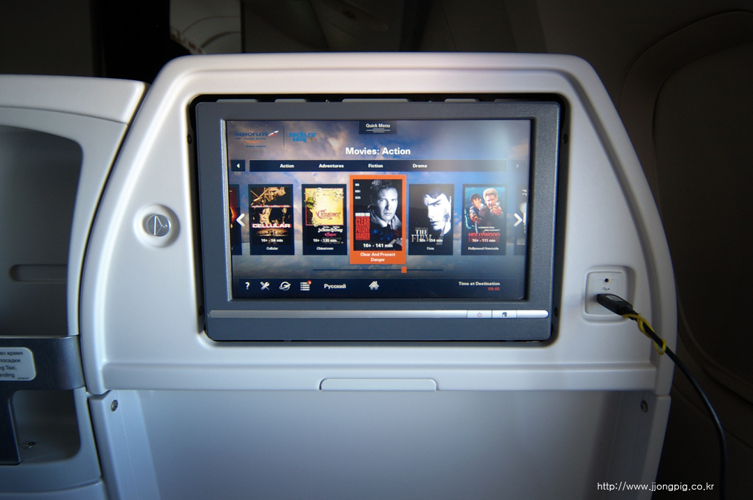 장거리 구간에 투입되는 Boeing 777-300ER이나 Airbus A330-300 기종 등에서는 기내 개인모니터가 장착되어 있다. 대한항공처럼 큰 화면은 아니지만 기본적인 구성은 갖춰져 있다. 그대신 한국어로 볼 수 있는 영화 등은 적은 편이기 때문에 아쉬운 부분일 수 있지만, 영어가 가능하다면 모스크바까지 날아가는 동안 크게 심심하지는 않을 것 같다.