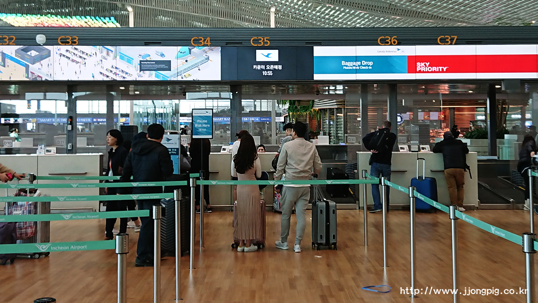 드디어 카운터가 오픈되고 수속이 시작되었다. 남자직원분이 그 날 기분이 안좋았던건지 굉장히 까칠까칠하다. 옆에서 보기 좀 불편할 정도로.