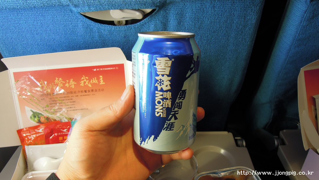 비행기가 이륙하고 나면 물수건을 준다. 바느질이 있는 물수건이어서 일회용은 아닌것 같기도 하고 좀 특이했다. 음료는 기본적인 것들은 준비되어 있다. 혹시 맥주는 어떤것을 주나 싶어서 시켜보았다.