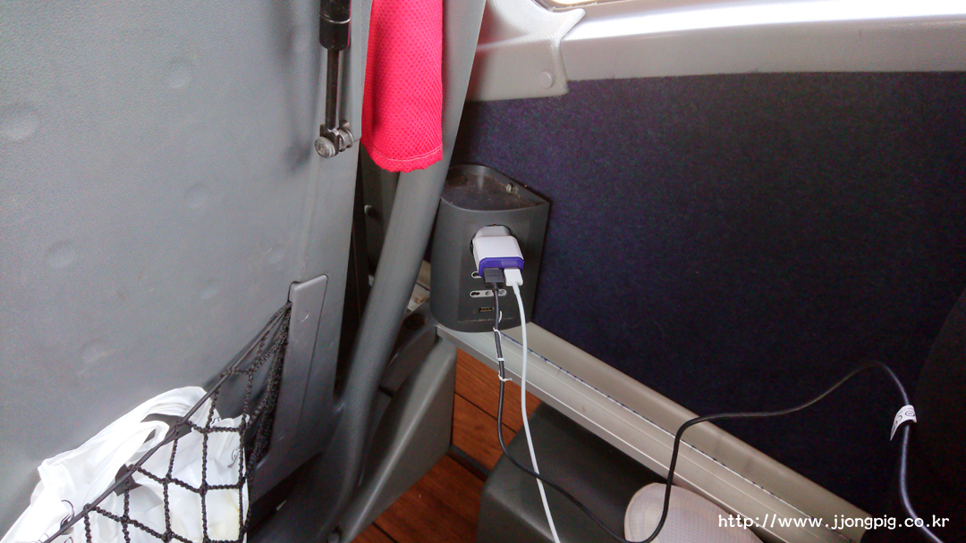 버스에 탑승하면 전원 연결이 가능한 플러그 소켓이 마련되어 있다. 스마트폰이나 보조배터리 충전 등을 쉽게 할 수 있다.