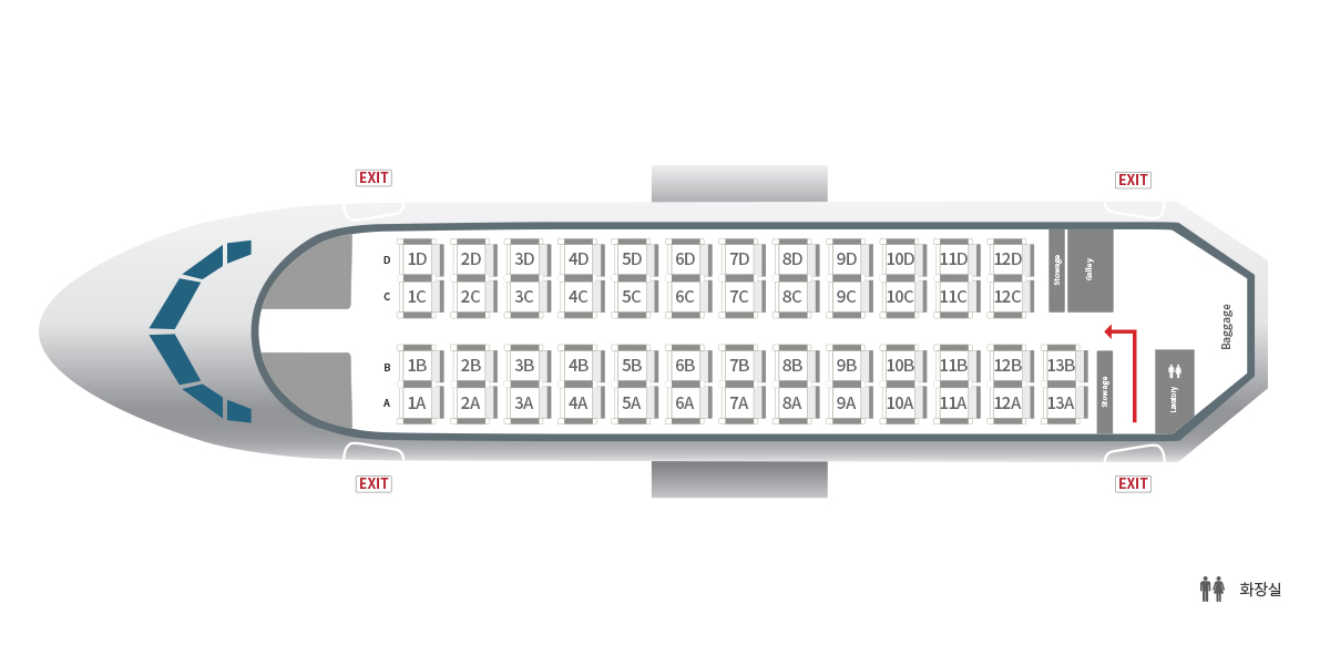 - 1열은 비상구로 사전 좌석 배정 및 웹 체크인 불가 좌석입니다.