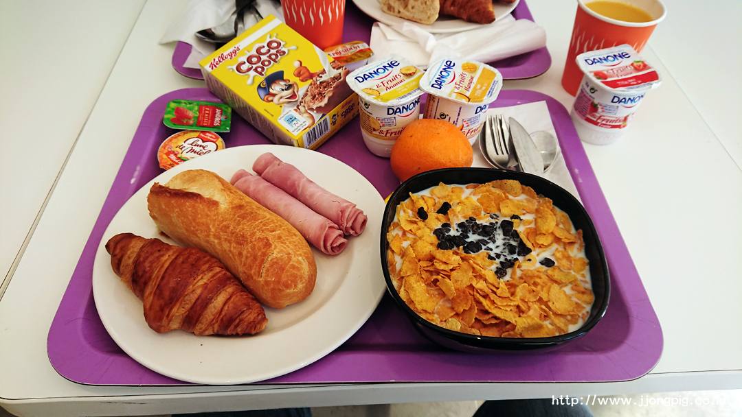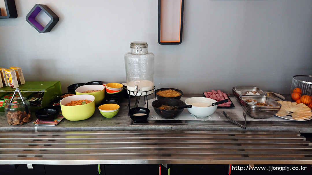 이곳의 조식은 전형적인 cold buffet 스타일이다. 뭔가 구성은 단순한것 같아도, 기본적인 구성은 모두 있어서 아침은 든든하게 채울 수 있는데, 어린이들에게는 코코팝스 같은 필살기?도 있기 때문에 무난하게 이용가능하다고 본다. 조식당이 0층인데, 조식당에서 바로 아랫층으로 연결되는 화장실도 이용가능하다.