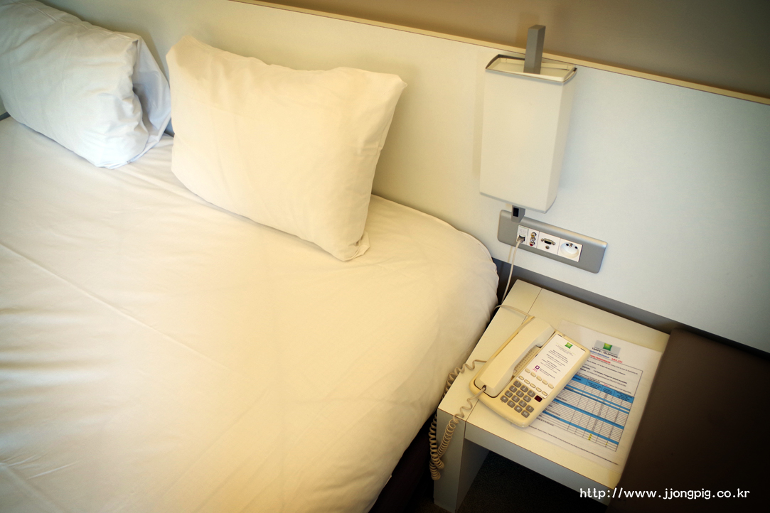 이 호텔에서 운영중인 객실은 더블, 트윈, 트리플, 패밀리룸 이렇게 총 4종류인데, 객실 사이즈도 나열한 순서대로 점점 커진다. 여기도 흰색 침구류를 기본으로 하여 기본적인 시설은 갖추고 있다.