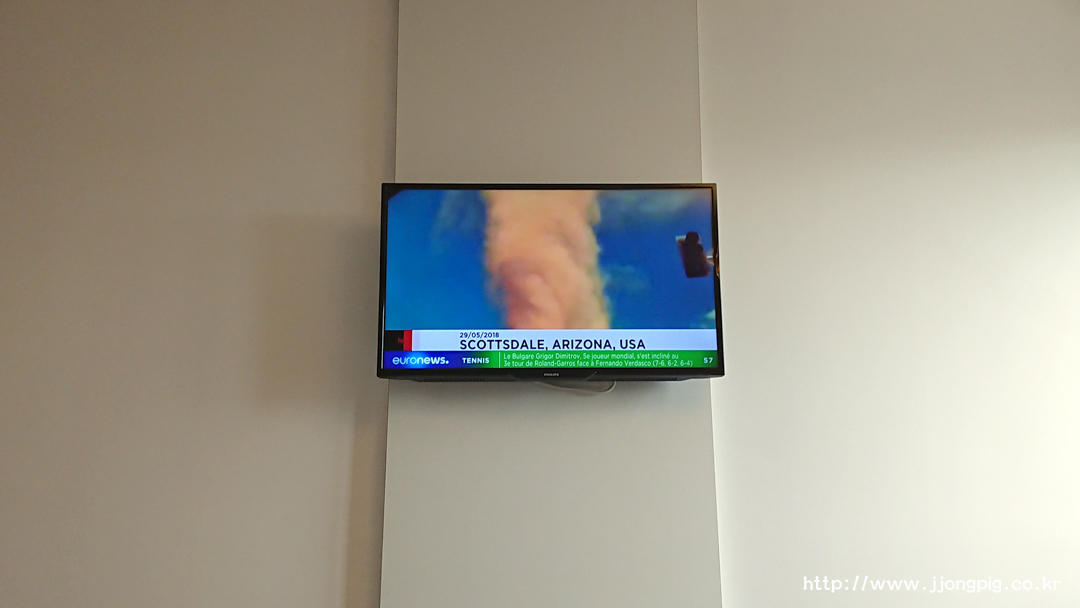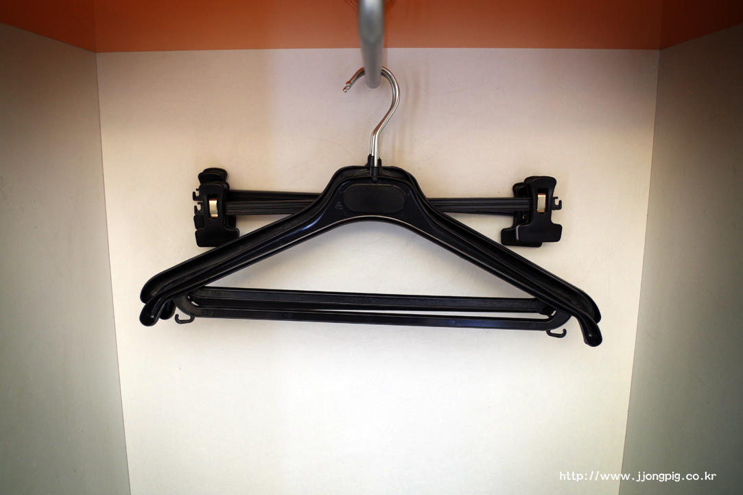 옷걸이 등도 있고 TV도 평면TV이며, 케이블까지 별도로 준비하면 노트북 등에서 TV로 연결도 가능한 콘센트도 갖추고 있다.