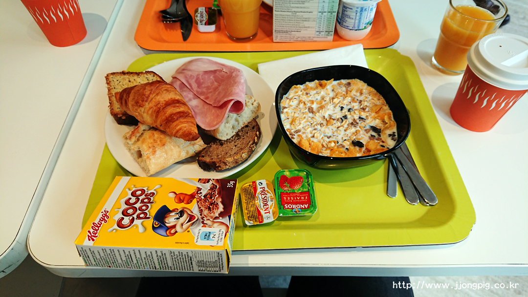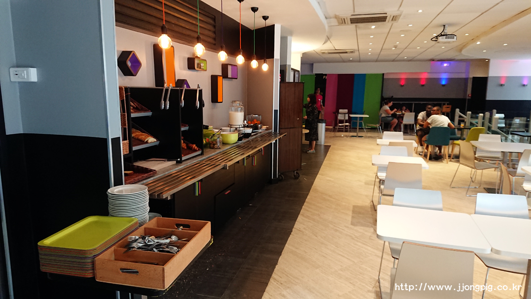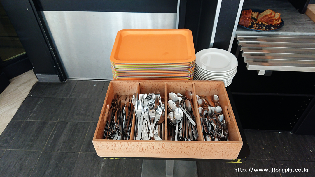 이곳의 조식은 전형적인 cold buffet 스타일이다. 뭔가 구성은 단순한것 같아도, 기본적인 구성은 모두 있어서 아침은 든든하게 채울 수 있는데, 어린이들에게는 코코팝스 같은 필살기?도 있기 때문에 무난하게 이용가능하다고 본다. 조식당이 0층인데, 조식당에서 바로 아랫층으로 연결되는 화장실도 이용가능하다.