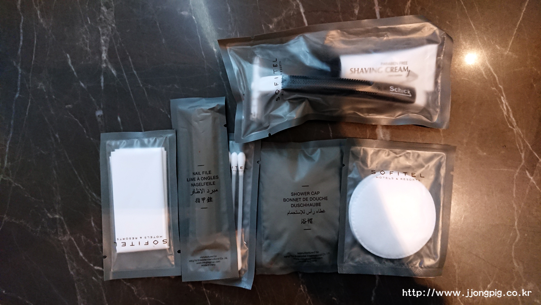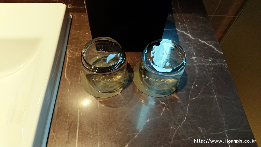 세면대 쪽의 구성품들을 보면 어메니티가있고 샴푸, 린스, 비누 등은 LANVIN 제품을 사용하고 있는데 이런거 보면 Sofitel의 국적?이 드러난다.