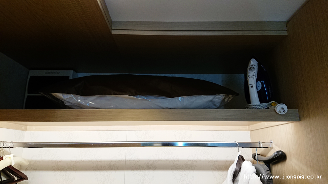 옷장쪽을 보면 욕실 가운을 비롯해 다림미와 다리미판까지 셋팅되어 있다.