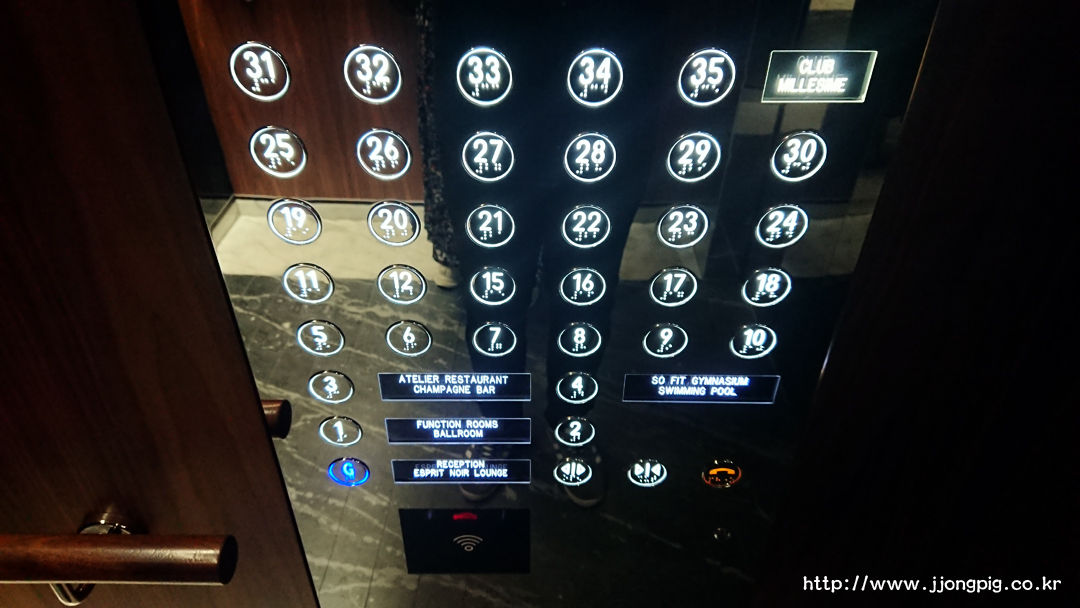 고층을 오가야 하기 때문에 엘레베이터는 고속으로 이동하는데, 로비는 G 버튼을 누르면 된다. 그런데 닫힘버튼 누르다가 비상전화 버튼 누를 것 같다. -.-
