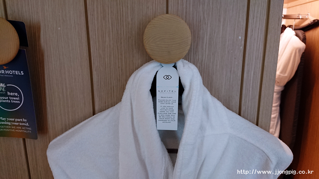 호주는 우리나라와 비교해서 플러그모양이 다르기 때문에 변환 어댑터가 있어야 한다. 미리 준비 못했다면 미니바 안의 어댑터를 사용해도 된다. 사용시에는 스위치를 켜줘야 사용가능한데, 소피텔정도면 플러그 한두개는 멀티 형태로 제작했으면 하는 아쉬움이 있다. 플러그는 4~5개 정도 되기 때문에 여유 있게 사용할 수 있었다.