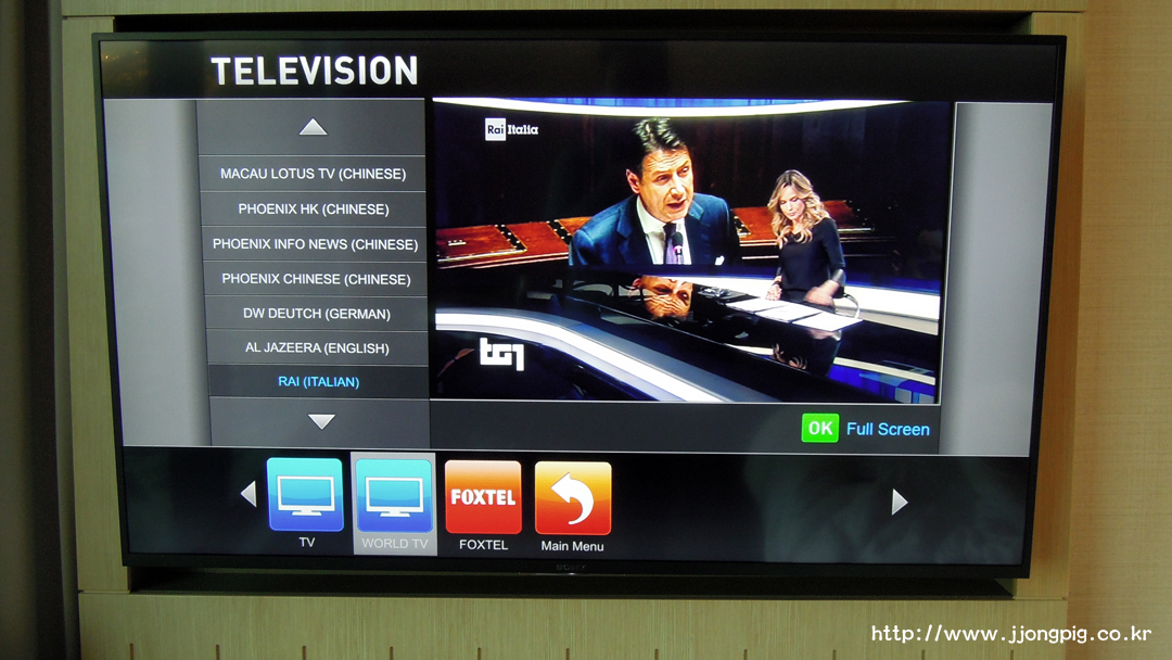 큰 사이즈의 평면 TV가 있는데 침대에서 볼 수 있게 따로 뺄 수 있다. 그런데 우리나라의 아리랑 TV는 물론 YTN까지 나오지만, 그 흔한 BBC나 CNN 채널은 찾아볼 수 없었다. 이 호텔의 특징이라기 보다는 호주에 있는 호텔들의 전반적인 특징같다.