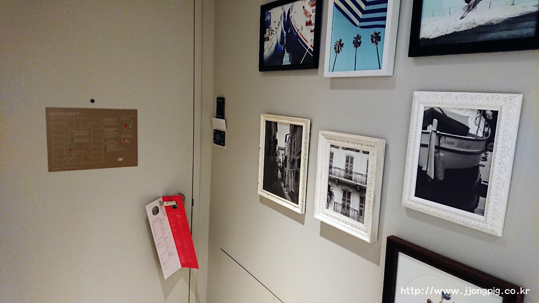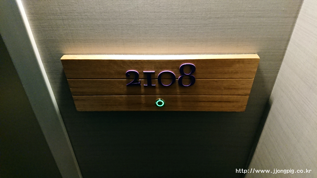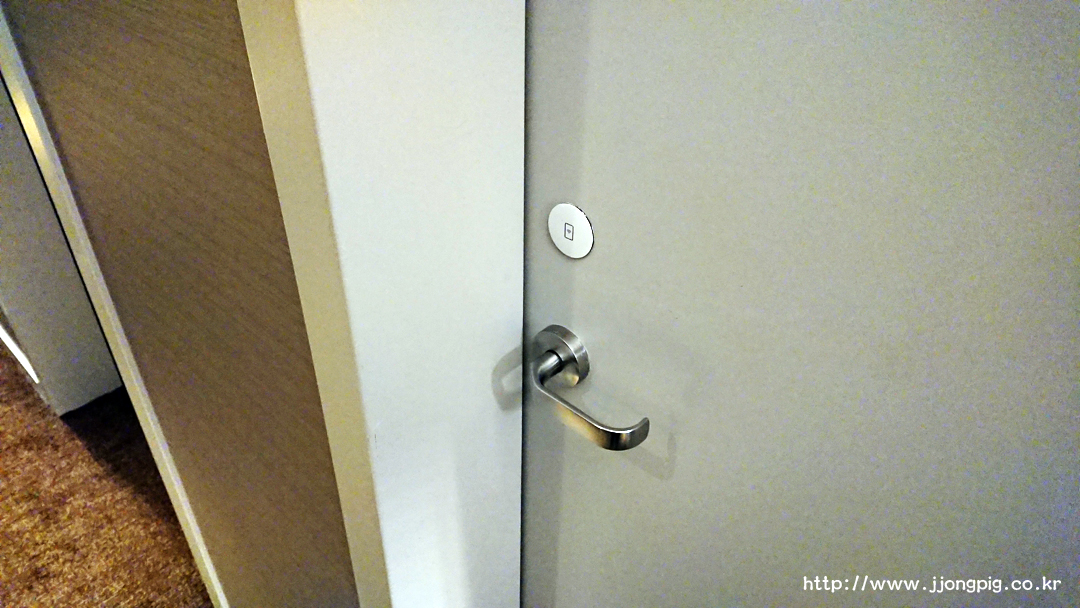 키카드를 손잡이 위에 터치하면 방문이 열리고, 키카드를 꽂지 않아도 전원 연결이 되기 때문에 개인적으로는 좋았던 부분이다. Do not disturb 등은 바깥에 걸지 않고 버튼을 눌러서 표시하는데, 바깥에서는 방번호 아래에 표시가 된다.