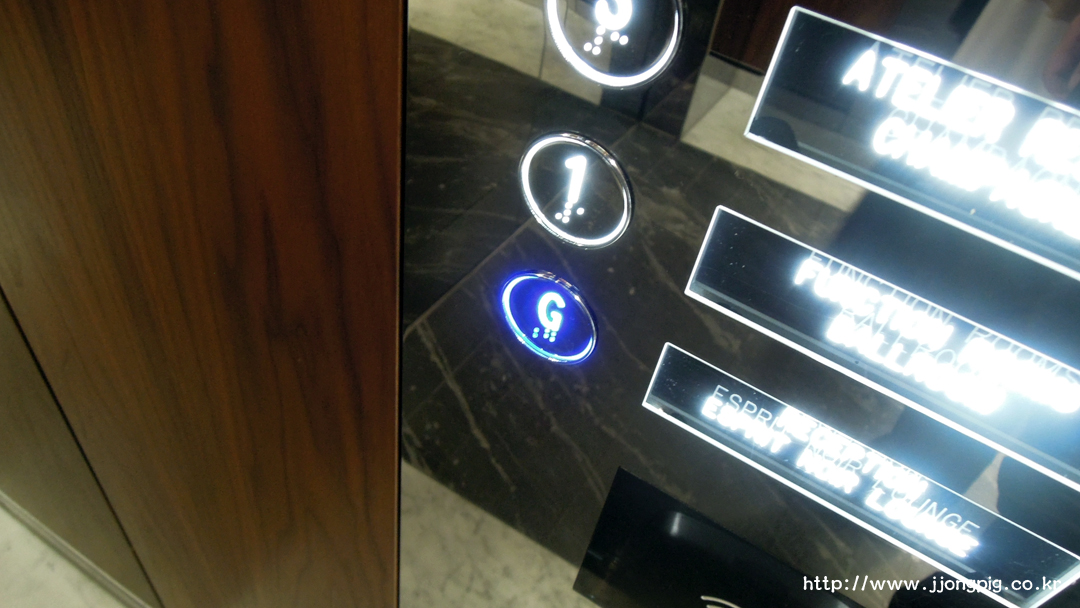 고층을 오가야 하기 때문에 엘레베이터는 고속으로 이동하는데, 로비는 G 버튼을 누르면 된다. 그런데 닫힘버튼 누르다가 비상전화 버튼 누를 것 같다. -.-