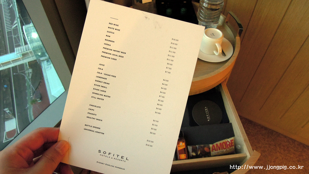 미니바 요금은 위의 사진과 같다. 그런데 시드니 여행을 하면서 느낀건데 편의점들과 비교하면 생각보다? 미니바가 안비싸다. 당황스러웠다. -.-