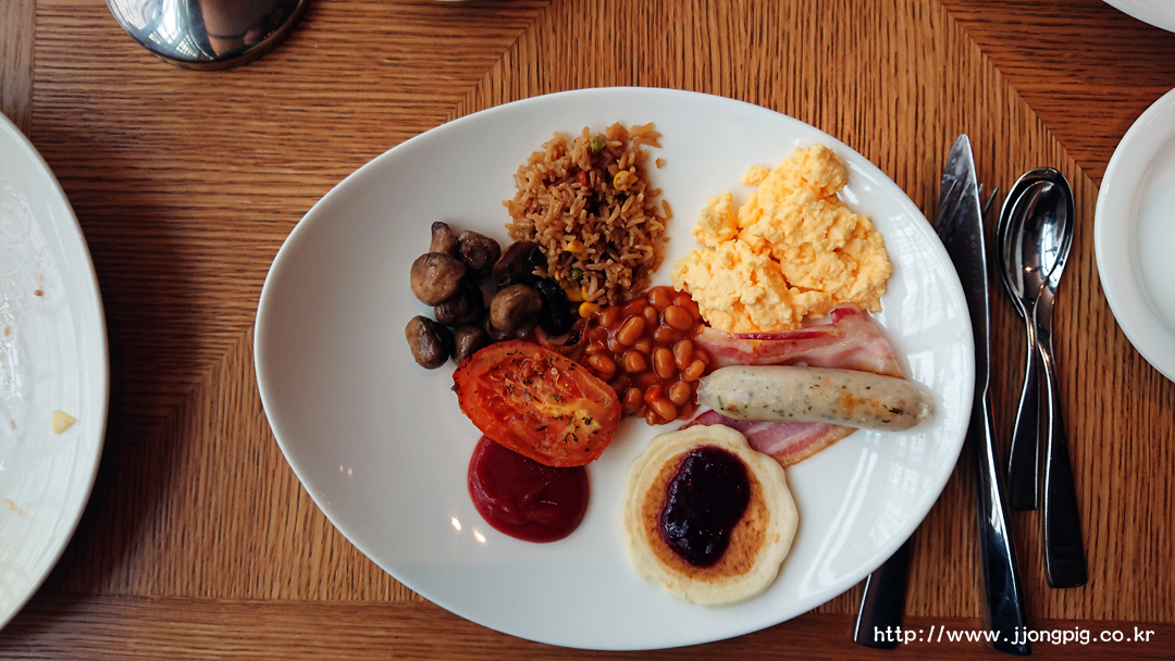 콘지(congee)가 있는게 특이했다. 거기에 김치도 있어서 신기했다. 주변 메뉴 들은 전형적인 영국식 English 스타일이다.