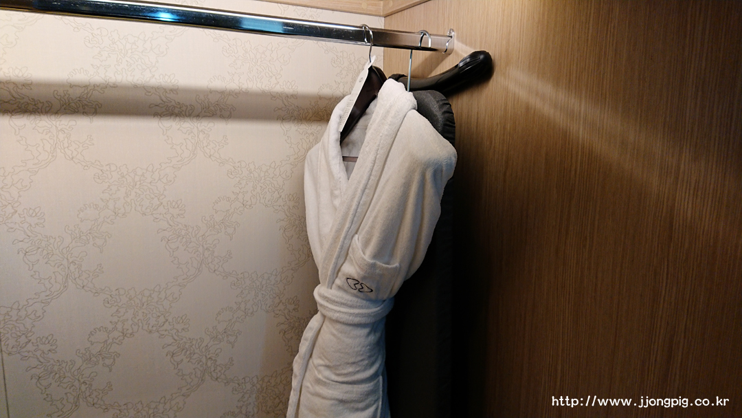 옷장쪽을 보면 욕실 가운을 비롯해 다림미와 다리미판까지 셋팅되어 있다.