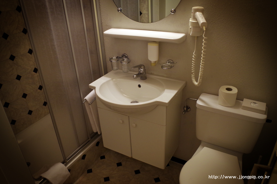 욕실도 깔끔하다. 욕조인 방도 있고 샤워부스로만 구성된 방도 있다.