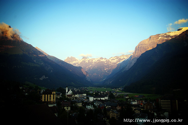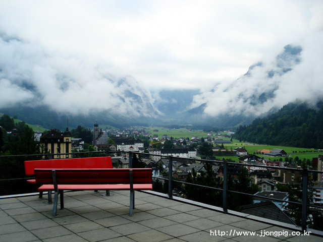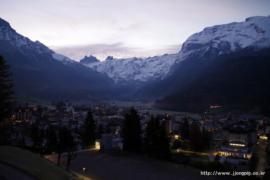 이 호텔은 엥겔베르그에서도 꽤 높은 곳에 위치한 곳이다. 그래서 티틀리스 방향으로 보면 멋지고 아담한 절경을 바라볼 수 있는데, 밤에 체크인을 하면 모르고 있다가 아침에 일어났을 때 짠 하고 나타나는 절경이다.