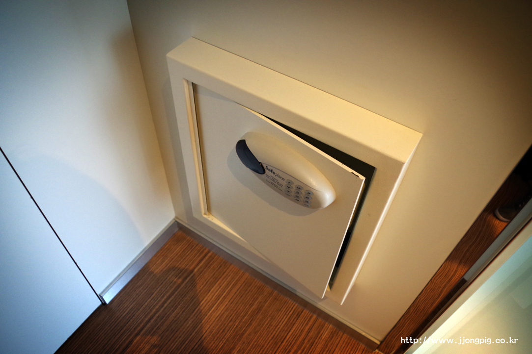도난 사고 방지를 위한 금고가 있는데, 붙박이? 형태로 구성되어 있다.