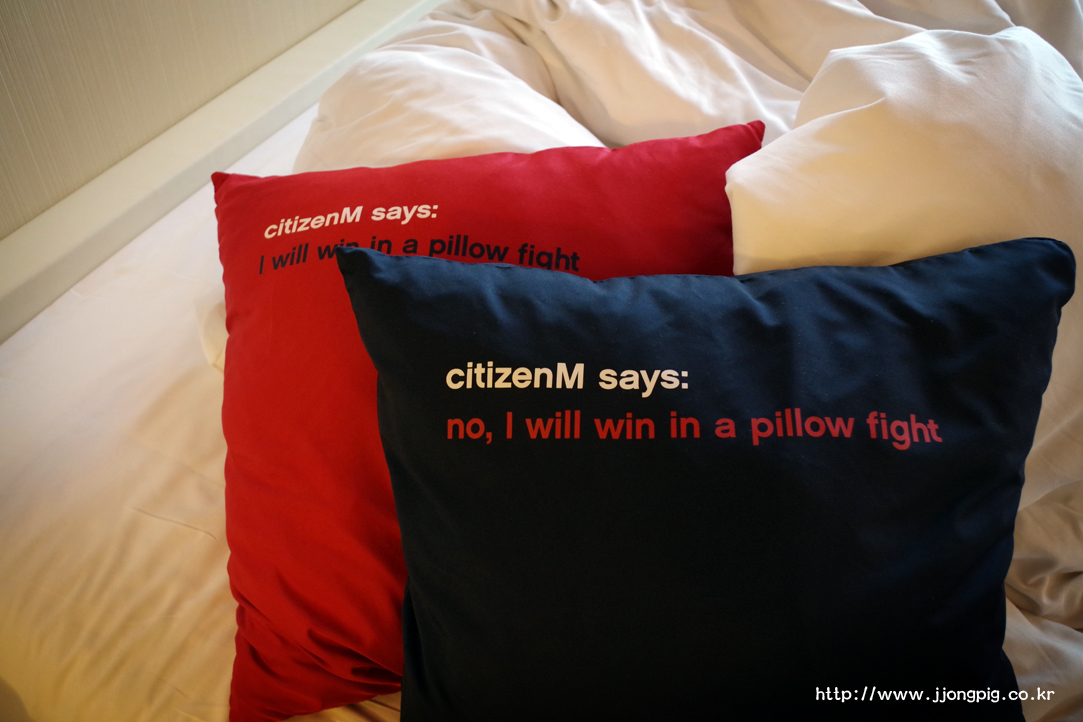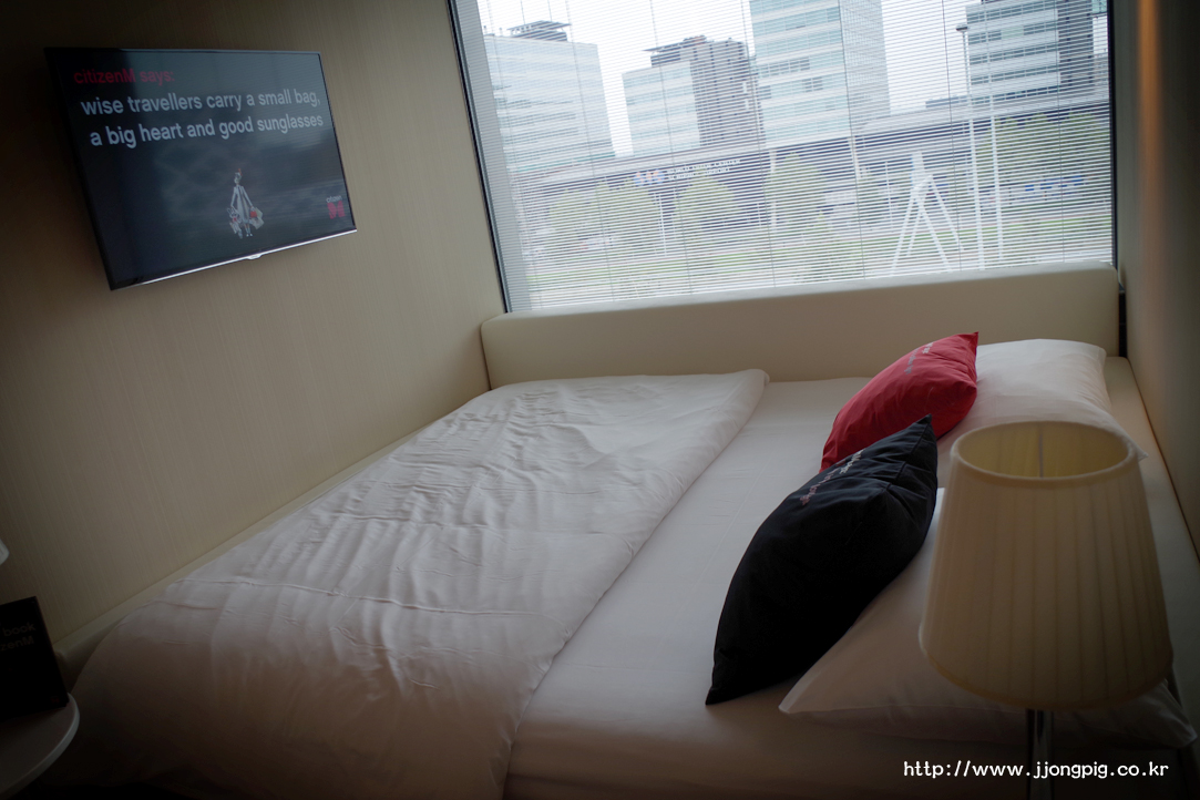 침대 위치가 특이한데, 완전히 창가쪽으로 붙여놓았다. 그리고 킹 사이즈의 침대인데, 이 호텔은 트윈형태가 없고 더블 아니면 싱글룸 형태만 존재하는 것 같다.