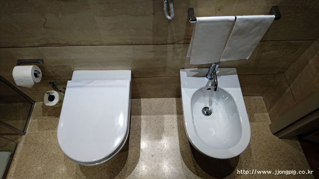 객실내에 있는 욕실은 욕조가 있는 형태는 아니고 샤워부스가 있는 타입인데 이탈리아 호텔 답게 비데가 별도로 있다.