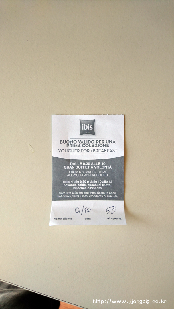 차량으로 이동할 때 피렌체에서 묵어야 될 일이 생겼다. 그런데 피렌체 여행할 것도 아니었고 바로 다른 곳으로 이동할것이었는데, 피렌체 주변에 차량 주차 가능하면서도 숙박비가 저렴한 호텔을 찾다보니 ibis 체인의 이 호텔이 눈에 띄어서 이용해보았다.
