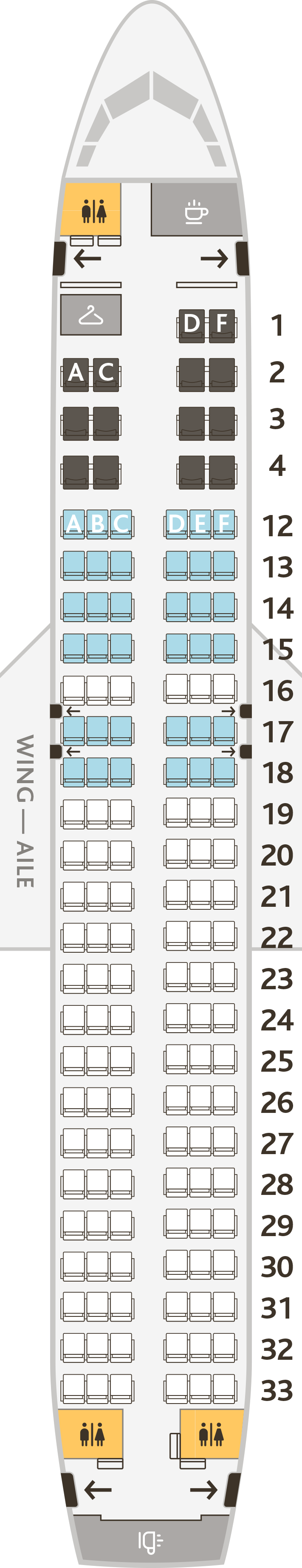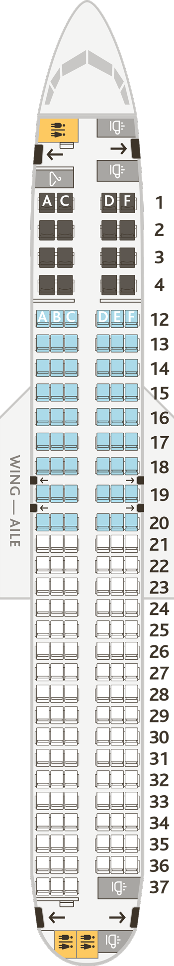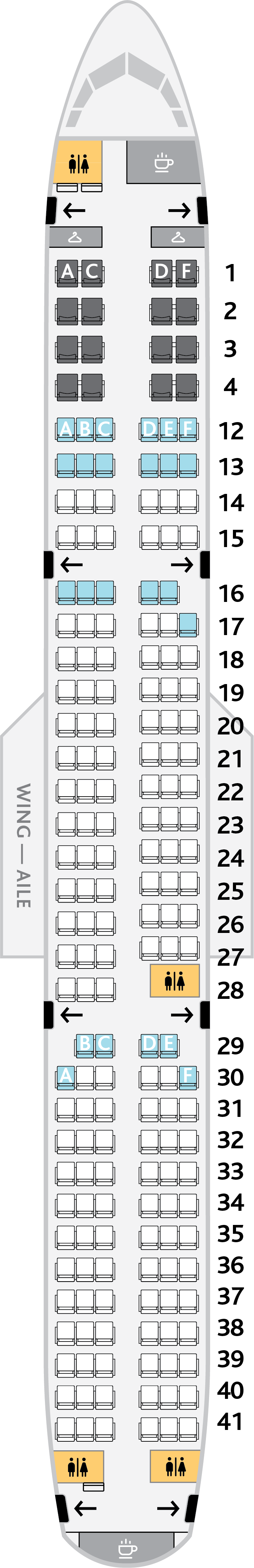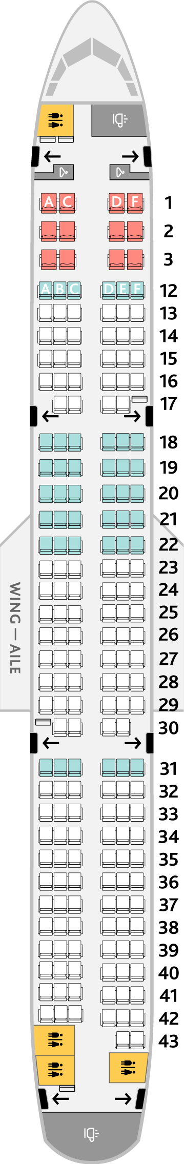 Jazz나 Rouge 등의 자회사를 같이 운영중인데 기종별로 좌석배치도를 정리해보았다.