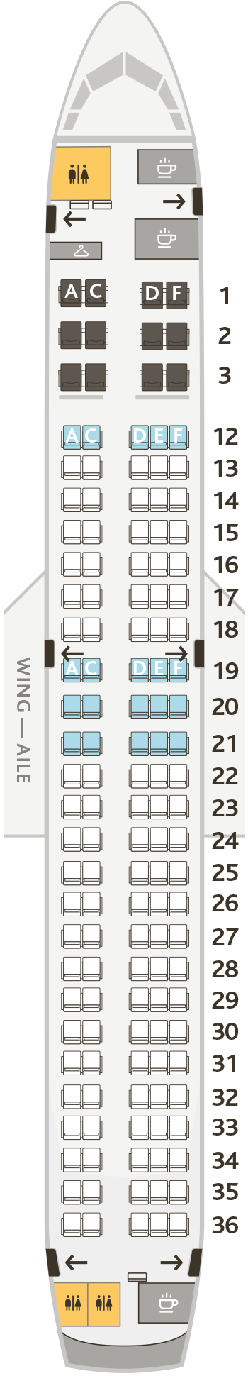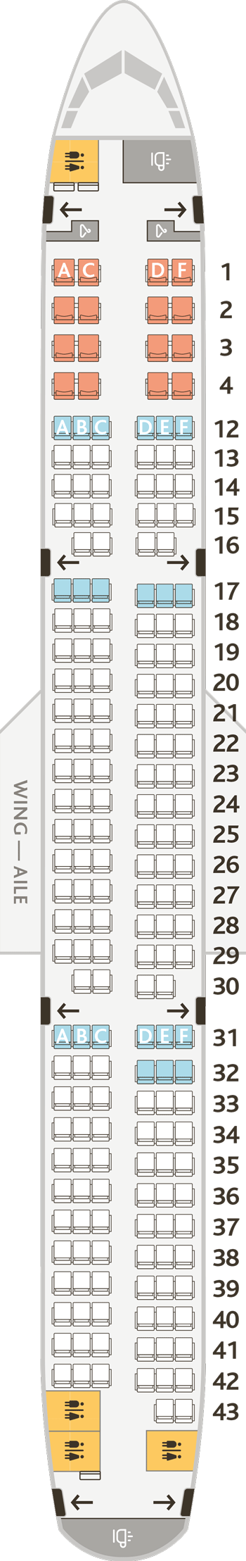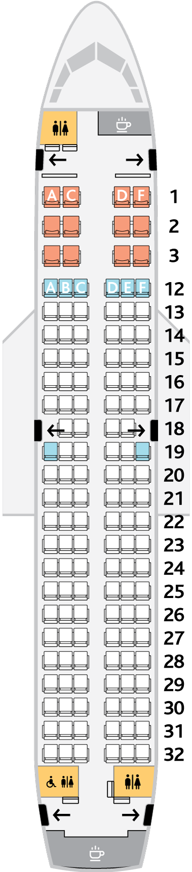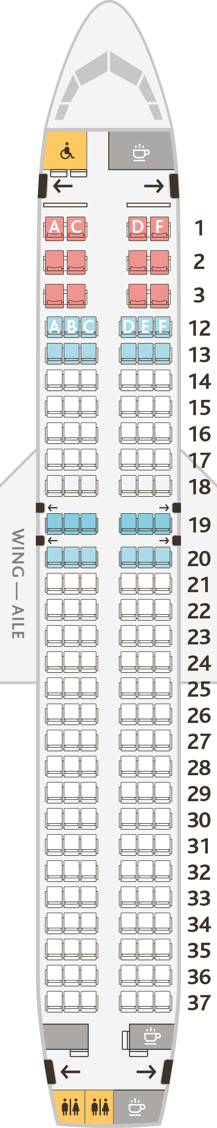 Jazz나 Rouge 등의 자회사를 같이 운영중인데 기종별로 좌석배치도를 정리해보았다.