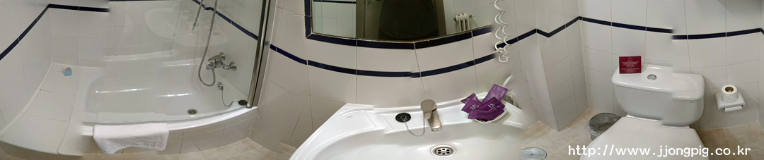 객실은 깔끔하게 구성되어 있다. 단순히 1~2박 정도 숙박하면서 잠만 자고 가는데에는 절대 무리가 없는 객실이고, 창문도 가릴 수가 있어서 뜨거운 여름에도 충분히 해를 가릴 수 있는 구조다. 창문을 열면 옆에 있는 학교 운동장 뷰가 나오는데, 이 호텔에서 뷰는 기대안하는것이 좋을 것 같다. 침대는 더블룸이어도 트윈룸처럼 분리가 가능한 구조로 되어있다. 욕실은 욕조가 있고 깔끔하게 구성되어 있다.