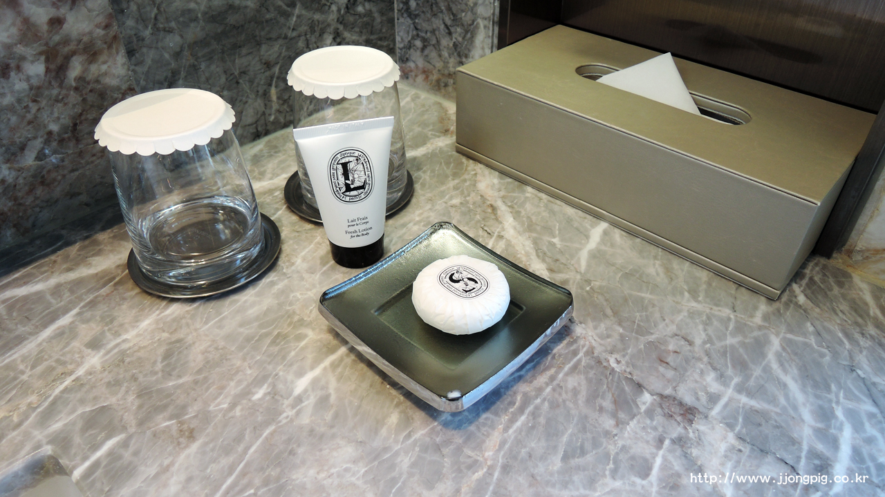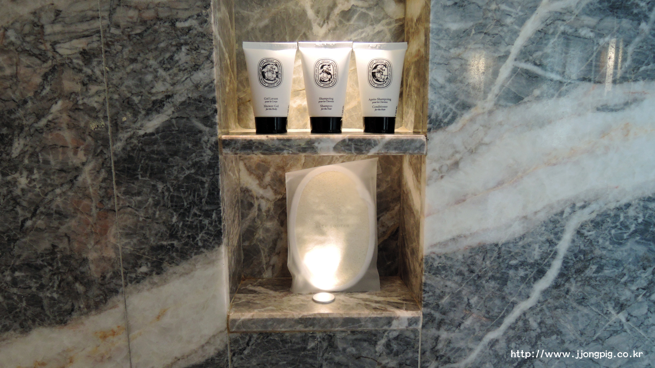 어메니티 구성 중에 샤워젤, 샴푸, 컨디셔너, 비누 등은 딥디크 제품을 쓰고 있다. 사실 나는 LG생활건강, 애경 등의 제품을 써도 상관없지만 이 제품의 향이 정말 좋았다. 수세미(loofah)도 천연재료로 만들어진것 같다.