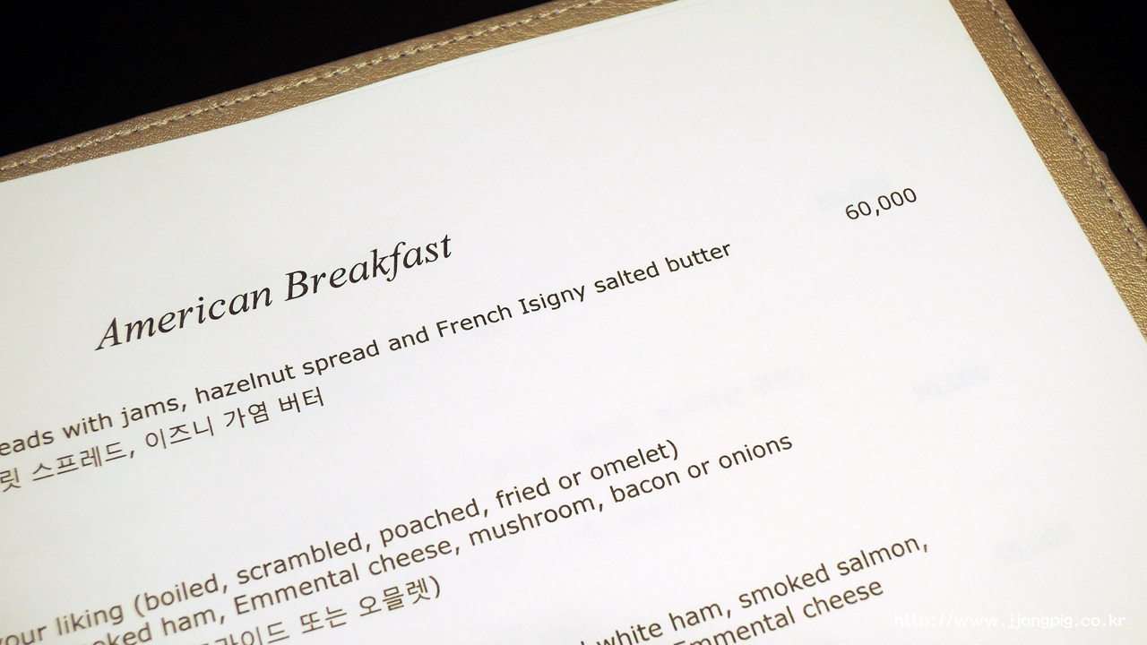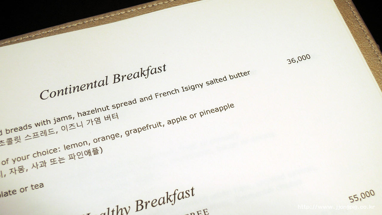 아침은 1인당 4~7만원 사이라고 보면 좋을 것 같다. 혹시나 조식 포함조건으로 객실 예약 후 아침을 룸서비스로 신청하면 컨티넨탈 조식으로만 변경 가능하기 때문에 미리 진지하게 생각해보자.