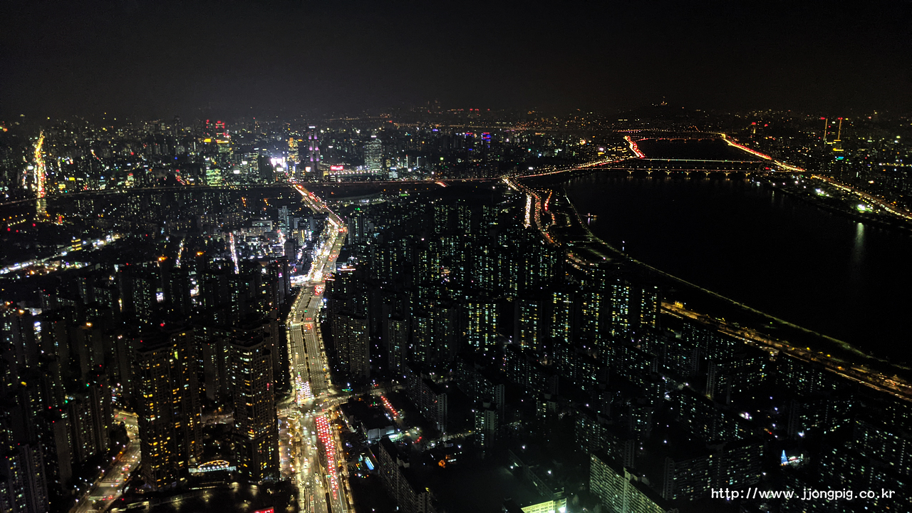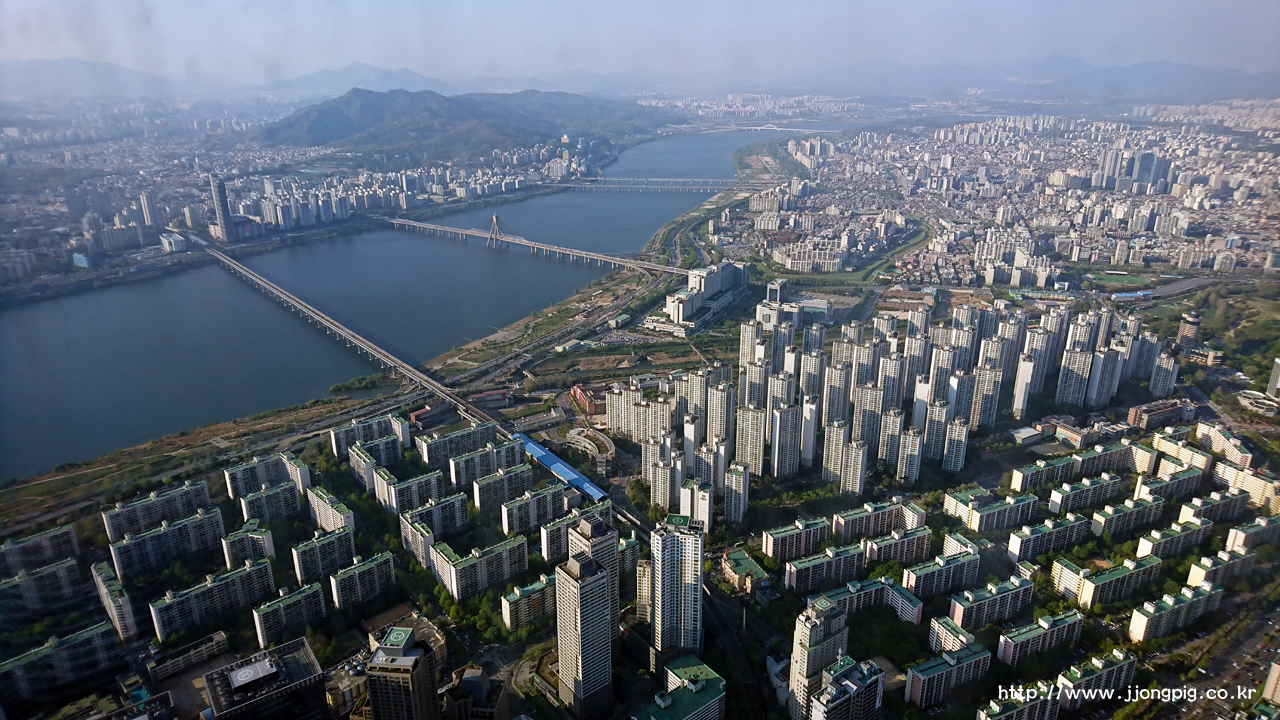 └ 아래로는 인터라켄처럼 석촌호수 두개가 보이고, 저 멀리 성남공항도 보인다. 비행기에 관심 많은 나로서는 좋은 뷰이지만, 오늘은 결혼 기념일이니 패스! - 동쪽 방향