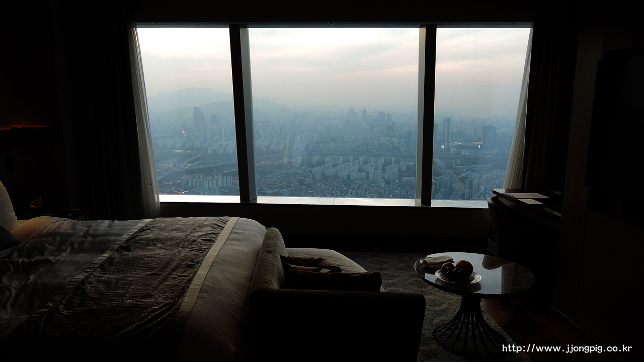 집에서 롯데타워를 바라보게 된다. 롯데타워가 안보이면 미세먼지가 많다는 이정표 같은 곳인데, 결혼기념일을 맞이해서 와이프랑 같이 묵어보기로 했다.