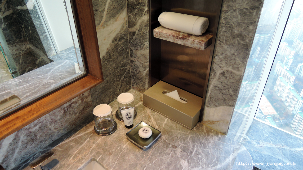 객실 창문 바닥은 대리석으로 마무리가 되어있는데 나름 너비가 넓어서 걸터 앉아서 바깥 바라보기도 좋다. 그리고 이 정도 높이면 외부에서 바람이 엄청날텐데 객실내에서는 그런거를 전혀 못느낄 정도로 방음 등은 잘되어 있었다.