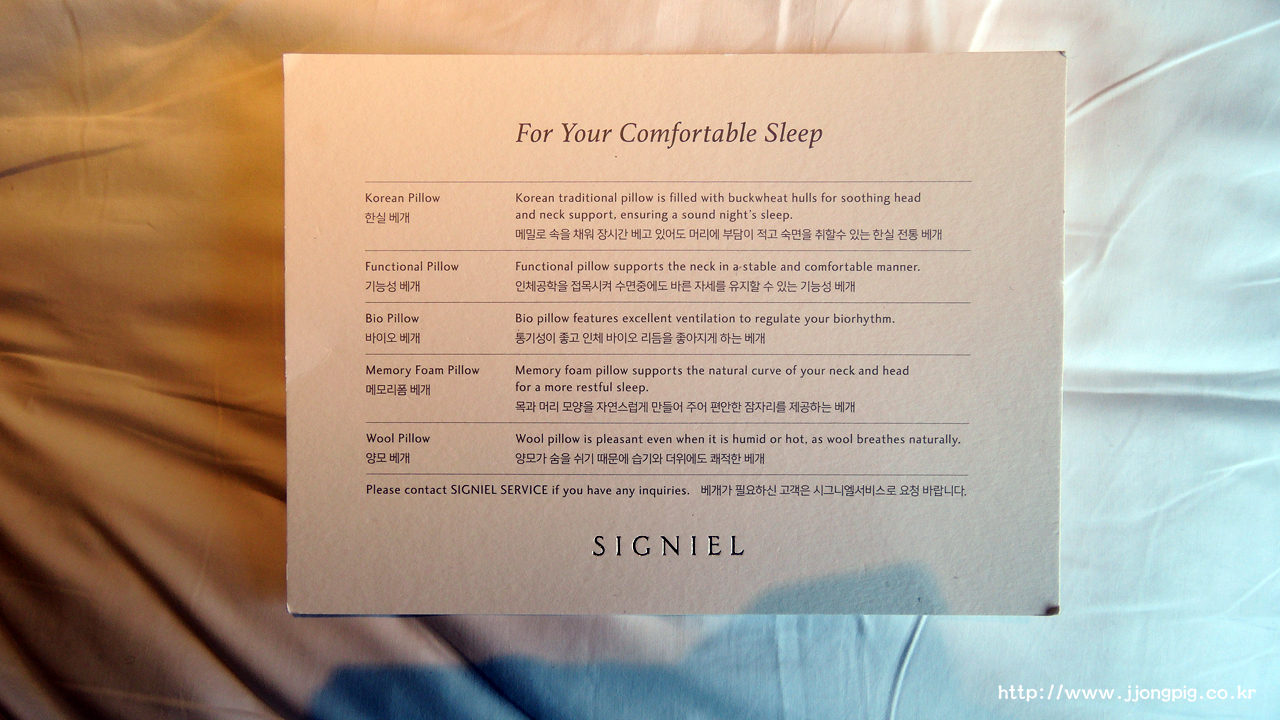 베개를 선택할 수 있다고 한다. 한실, 기능성, 바이오, 메모리폼, 양모 베개 등 다양한데 평소 접하지 못했던 베개를 사용해보는것도 좋을 것 같다. 다만 침구류 전체까지 컨셉을 바꿀 수 있지는 않다.
