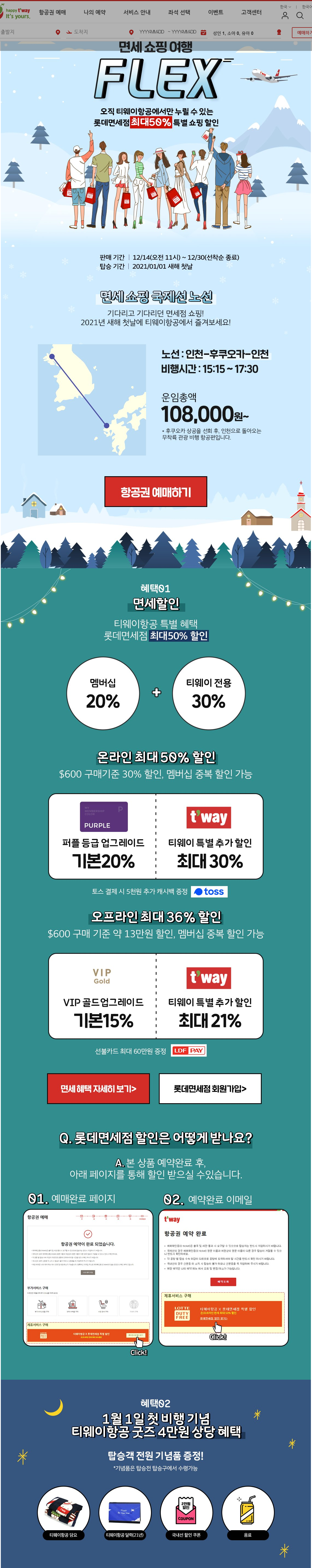 신세계 면세점과 제휴를 한 것 같고, 항공편 좌석은 19만 8천원으로 모두 동일하다. 12월 25일 성탄절이나 12월 31일, 1월 2일(1월 초) 등의 스케줄을 확보하고 있어서 잘 선택하면 직장인들도 휴가 안쓰고도 이용 가능하다.