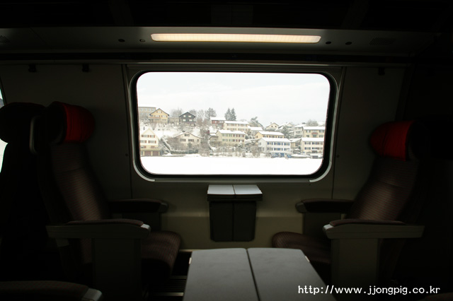 - 취리히에서 진행방향의 왼쪽에 앉으면 취리히 호수 등의 풍경을 볼 수 있다.