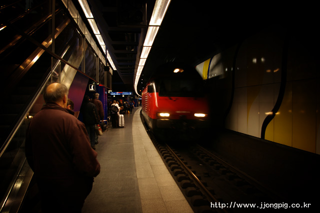 - St.Gallen, Munchen, Romanshorn 행 등의 열차가 취리히 공항역을 지나간다.