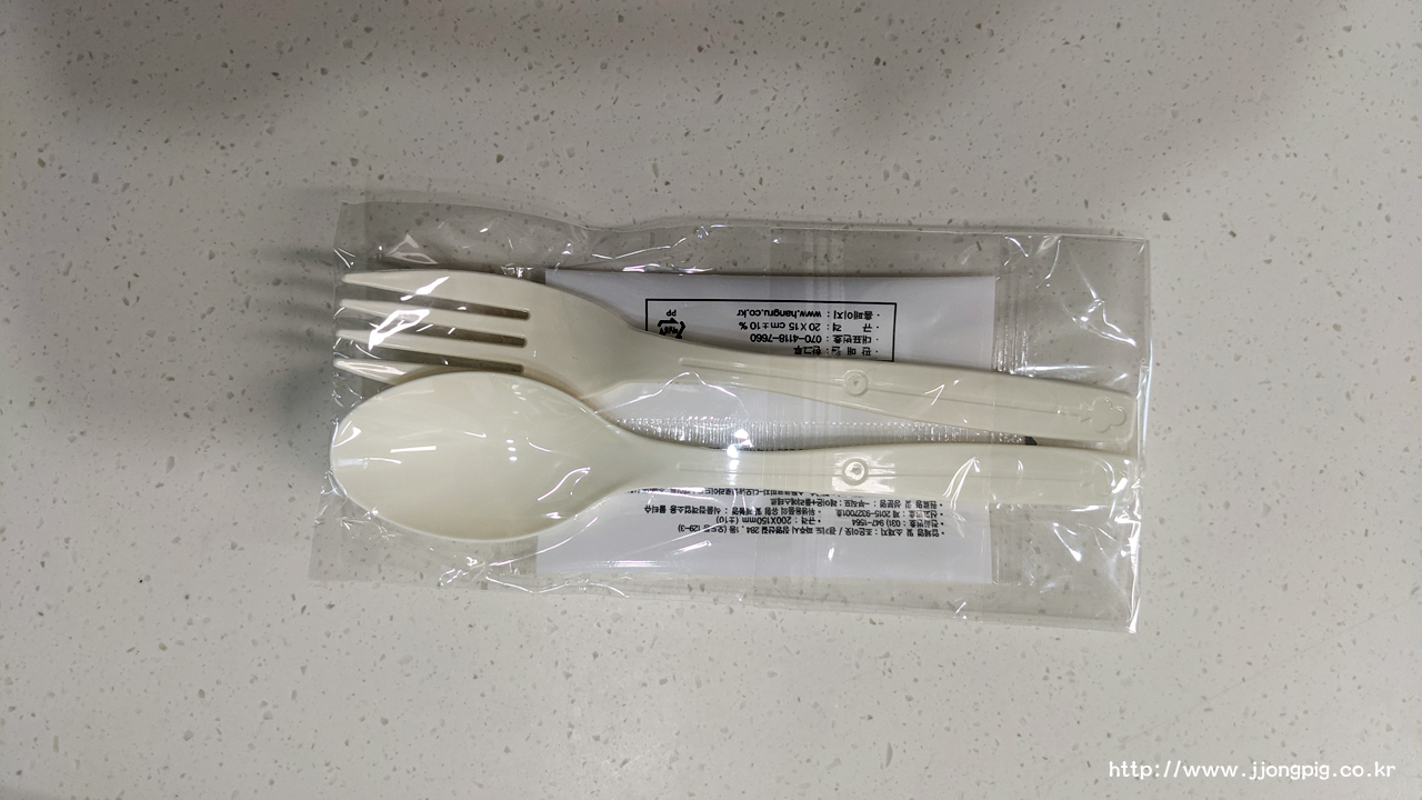 포크와 스푼, 물티슈는 있는데 나이프는 없다.