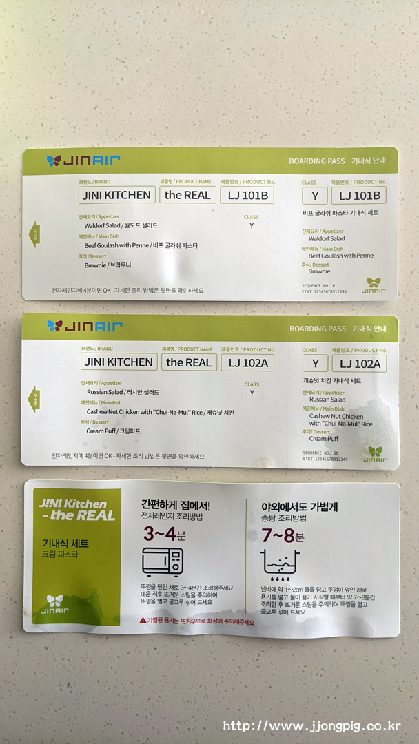 진에어 홈페이지에 접속을 하면 기내식을 집에서 즐길 수 있다는 배너를 띄우고 있다. 마침 지인들이 관련 뉴스를 접하고는 이런거 먹어봤는지 물어보거나, 쫑픽은 이미 먹어봤을거라고 후기는 어땠는지 물어보는데 겸사겸사 주문을 해보기로 했다.