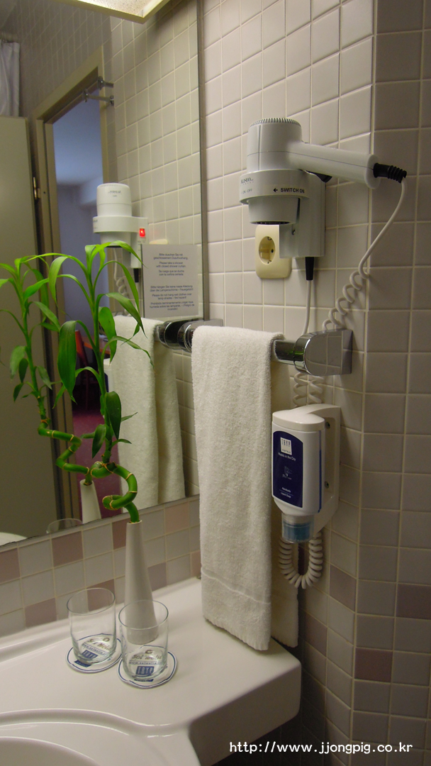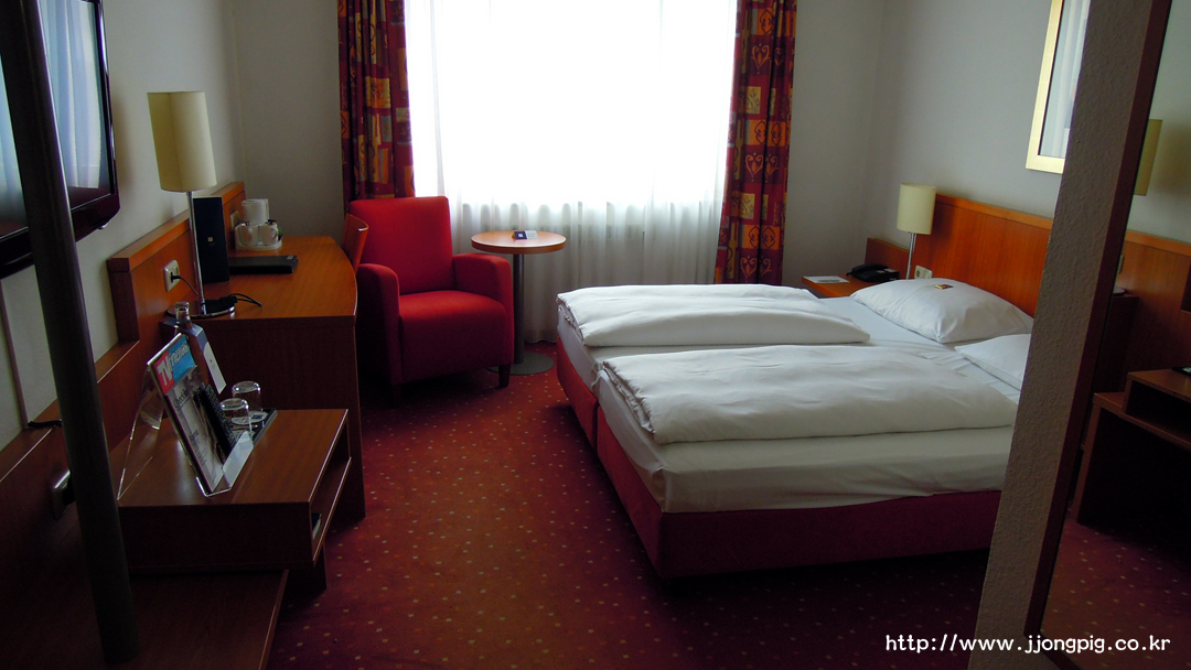 객실도 정말 독일스럽게 조금 넓은 방의 독일식? 침대 구성으로 갖춰져있다. 여기는 트윈룸과 더블룸의 의미가 없을것 같다. 침대를 떨어뜨리면 트윈, 붙이면 더블로 운영되는것 같았다.
