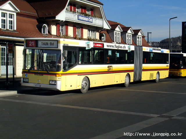 - 인터라켄에서 Spiez까지 가는 노란색 포스트 버스 (Post Bus)를 의미한다.