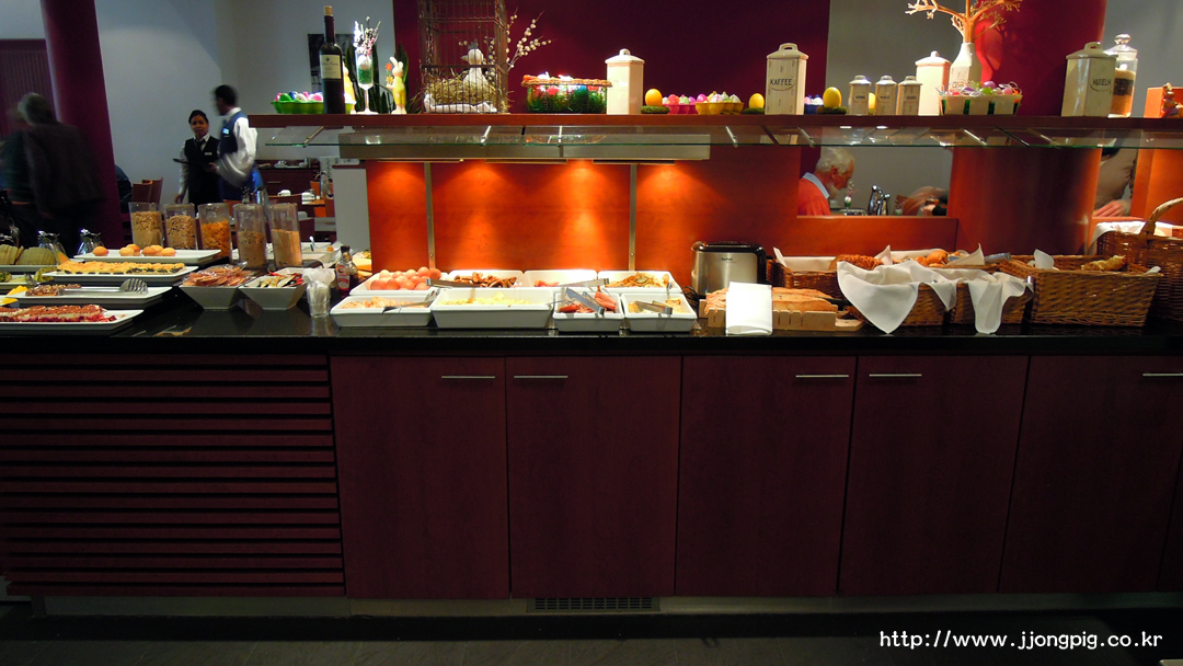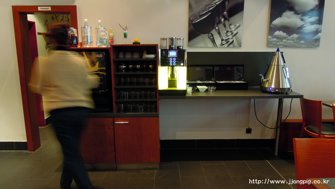겉은 평범한 건물인데 안에 들어갔더니 정말 컬러풀하면서도 뭔가 독일스러운? 분위기의 로비가 확인될것이다. 이 곳 리셉션 직원들은 손님과 유쾌한 대화를 잘 이끌어내는것 같다. 5성급 호텔을 가면 체크인하면서 손님이 기다리는동안 영혼없는? 매뉴얼대로의 질문을 꺼낼때도 있는데, 여기있는 직원분들은 손님하고 눈을 마주치면서 이야기하는것도 보이고 분위기가 밝은편이다.