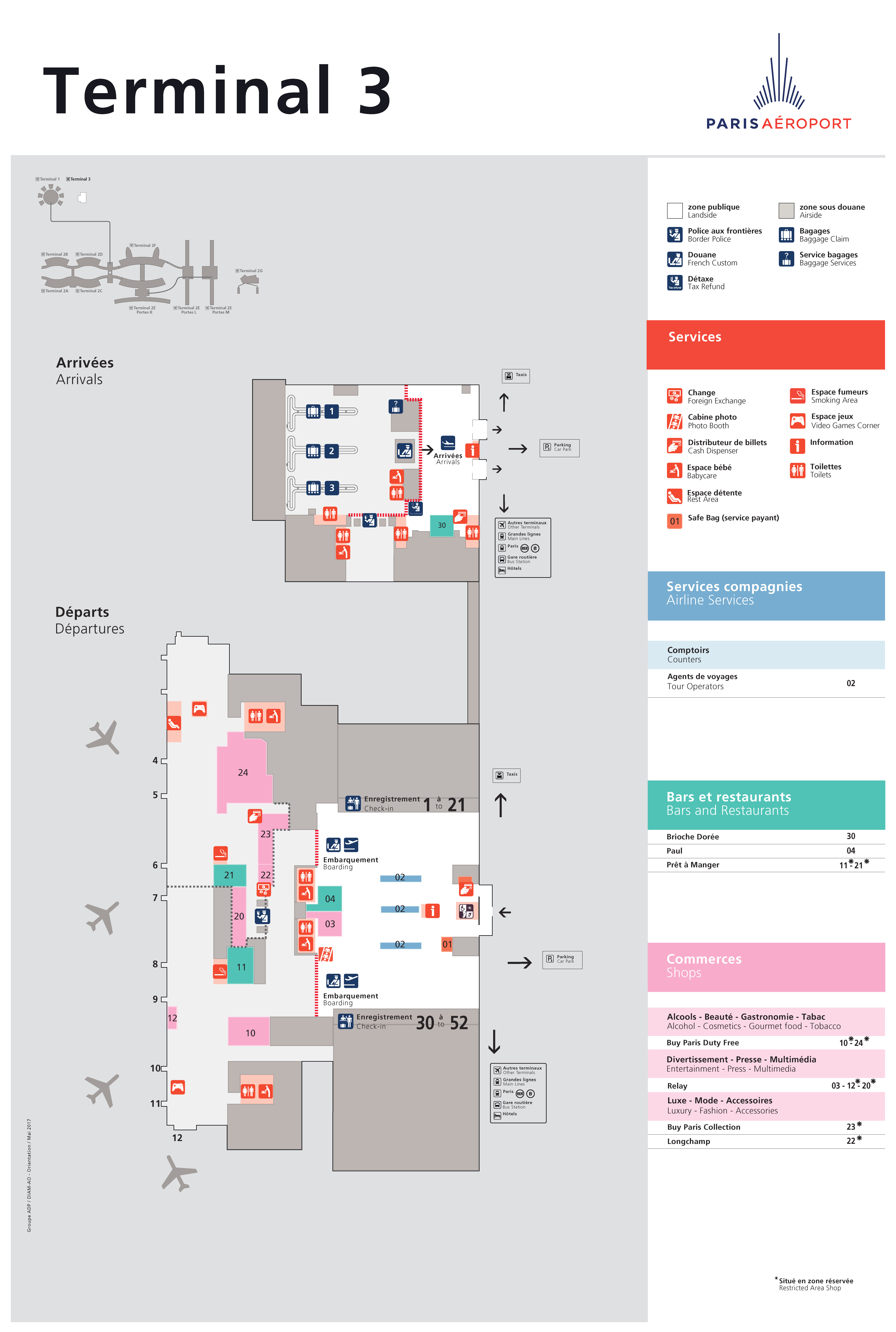 아래의 자료들은 파리 샤를 드골 공항의 가이드맵을 올려놓는다. 공식 홈페이지에 있는 자료이니 필요한 경우 참고해보면 된다.